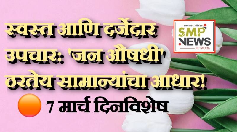 वाढती महागाई आणि आरोग्यावर होणारा प्रचंड खर्च पाहता, आजच्या काळात सर्वसामान्यांना परवडणारे उपचार मिळणे हे एक मोठे आव्हान बनले आहे. याच पार्श्वभूमीवर, केंद्र सरकारतर्फे दरवर्षी ७ मार्च हा दिवस 'जन औषधी दिवस' म्हणून साजरा केला जातो. "स्वस्त औषधे, दर्जेदार उपचार" हा या दिवसाचा मुख्य उद्देश असून, जेनेरिक औषधांविषयी समाजात जागरूकता निर्माण करणे हे याचे उद्दिष्ट आहे.