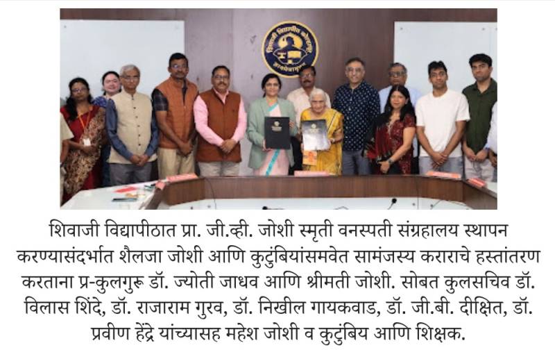 विद्यापीठाच्या विज्ञान व तंत्रज्ञान विद्याशाखेचे अधिष्ठाता तथा वनस्पतीशास्त्राचे प्राध्यापक डॉ. राजाराम गुरव यांनी डॉ. जोशी यांच्या स्मृतींना उजाळा देऊन या सामंजस्य कराराची पार्श्वभूमी विषद केली. ते म्हणाले, डॉ. जी. व्ही. जोशी यांनी १९६७ ते १९८२ या कालावधीत सुमारे १५ वर्षे वनस्पतीशास्त्र अधिविभागाचे प्रभावी नेतृत्व केले. विज्ञान विद्याशाखेचे अधिष्ठाता तसेच विद्यापीठाच्या व्यवस्थापन परिषदेचे सदस्य म्हणूनही त्यांनी महत्त्वाची भूमिका बजावली. त्यांच्या नावावर १०० हून अधिक शोधनिबंध असून त्यांच्या संशोधनामुळे शिवाजी विद्यापीठाला आंतरराष्ट्रीय ओळख मिळाली. २४ जुलै १९८२ रोजी त्यांचे अकाली निधन झाले. सुमारे ४३ वर्षांनंतर, मार्च २०२५ मध्ये शैलजा जोशी आणि त्यांच्या मुली मृणालिनी (अंजली) जोशी व मेघा जोशी यांनी वनस्पतीशास्त्र अधिविभागाला भेट देऊन प्रा. जोशी यांच्या स्मृतिप्रीत्यर्थ वनस्पती संग्रहालय स्थापन करण्याची इच्छा व्यक्त केली. त्यातूनच या सामंजस्य कराराची पूर्तता होत आहे. महत्त्वाचे म्हणजे कोणत्याही विद्यापीठाच्या वनस्पतीशास्त्र अधिविभागात शिक्षक, संशोधक, बॉटॅनिकल गार्डन, हार्बेरियम, ग्रंथालय आणि संग्रहालय या बाबींची आवश्यकता असते. शिवाजी विद्यापीठातील वनस्पती संग्रहालयाची कमतरता या सामंजस्य करारामुळे भरून निघाली असून अधिविभागाला खऱ्या अर्थाने पूर्णत्व प्राप्त झाले आहे.