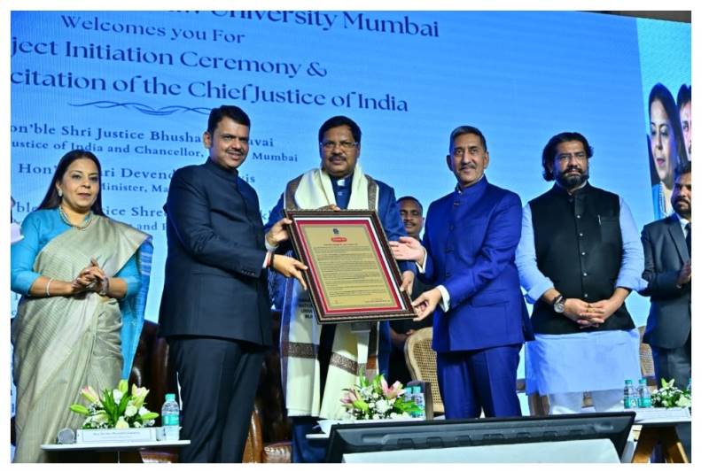 सरन्यायाधीश गवई यांच्या हस्ते गोरेगाव (पश्चिम), मुंबई येथे महाराष्ट्र राष्ट्रीय विधि विद्यापीठ प्रकल्पाचा शुभारंभ करण्यात आला. याप्रसंगी सरन्यायाधीश गवई यांचा सत्कार मुख्यमंत्री देवेंद्र फडणवीस यांच्या हस्ते करण्यात आला.