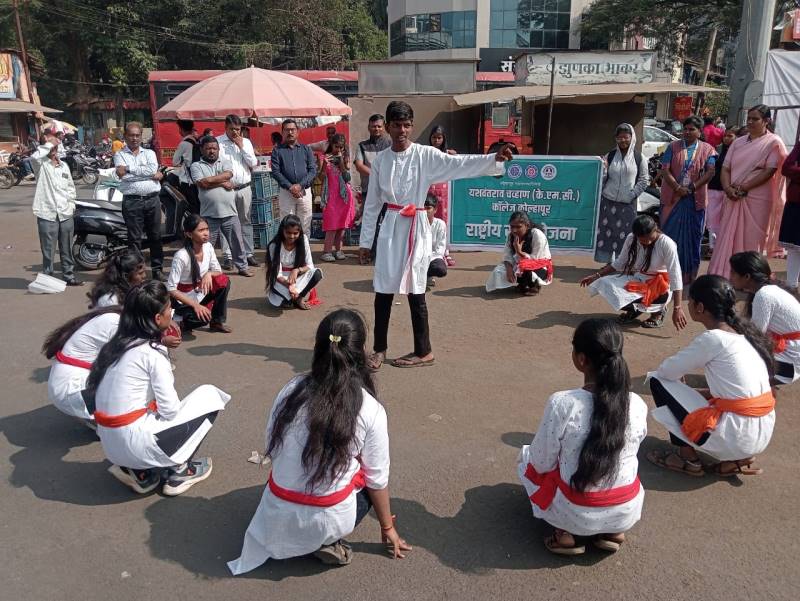 कोल्हापूर : महानगरपालिका सार्वत्रिक निवडणूक 2025-26 मतदार जागृती अभियाना अंतर्गत महापालिकेच्या यशवंतराव चव्हाण (के.एम.सी.) कॉलेजमधील कनिष्ठ व वरिष्ठ विभागातील सांस्कृतिक विभाग आणि राष्ट्रीय सेवा योजनेतील विद्यार्थी कलावंतांनी 'मतदार राजा जागा हो ' हे प्रबोधनपर पथनाट्य सादर केले. यामध्ये मतदान करणे हे नागरिकाचा महत्वपूर्ण अधिकार आहे.