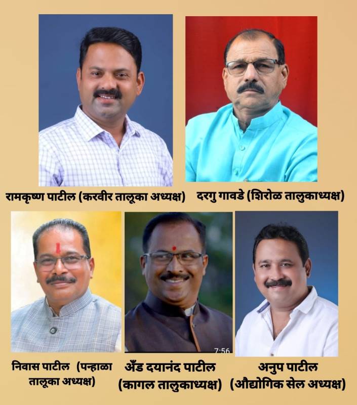 रामकृष्ण पाटील हे वरगणेचे ग्रामपंचायत सदस्य असून हनुमान विकास सेवा संस्थेचे चेअरमन आहेत. दरगु गावडे हे शिरोळ ग्रामपंचायतचे माजी सरपंच, पंचायत समितीचे माजी सदस्य व दत्त सहकारी साखर कारखान्याचे विद्यमान संचालक आहेत. श्रीनिवास पाटील हे यशवंत सहकारी बँकेचे माजी संचालक आहेत. तर कागलचे दयानंद पाटील हे ॲड. दयानंद पाटील-नंद्याळकर हे मंडलिक कारखान्याचे संस्थापक-संचालक असून सरपंच परिषदेचे माजी जिल्हा समन्वयक म्हणून काम केले आहे. तर अतुल महादेव पाटील ( महाराष्ट प्रदेश असंघटीत कर्मचारी कॉग्रेसच्या जिल्हाध्यक्षपदी निवड करण्यात आली