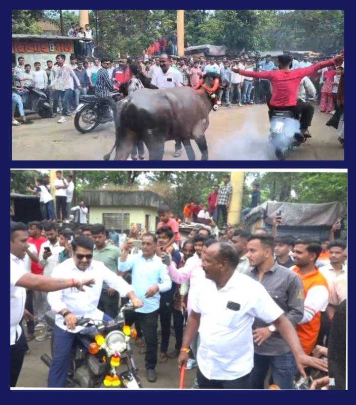 या पारंपरिक कार्यक्रमाला आमदार सतेज पाटील, आमदार राजेश क्षीरसागर आदी लोकप्रतिनिधींनी भेट देऊन उपस्थितांची मनं जिंकली. यावेळी आ. सतेज पाटील यांनाही दुचाकी मागून म्हैस पळवण्याचा मोह आवरता आला नाही.