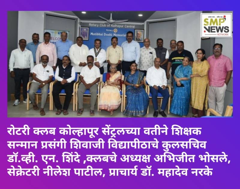 कोल्हापूर : रोटरी क्लब कोल्हापूर सेंट्रल च्या वतीने टीचर्स एक्सलन्स अवॉर्ड देऊन शिक्षकांचा सन्मान करण्यात आला. शिवाजी विद्यापीठाचे कुलसचिव डॉ.व्ही. एन. शिंदे यांच्या हस्ते आणि क्लबचे अध्यक्ष अभिजीत भोसले यांच्या अध्यक्षतेखाली हा कार्यक्रम झाला.