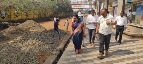 दामिनी हॉटेल ते व्हीनस कॉर्नर, राजारामपुरी बस रूटवरील पॅचवर्क आणि परिख पूल क्रॉक्रीट रस्ता कामाची प्रशासक के. मंजूलक्ष्मी यांच्याकडून पाहणी
