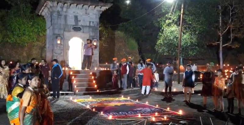 पन्हाळा : कोल्हापूर हायकर्स फाउंडेशन प्रा. लि ने वसुबारसच्या पावन संध्याकाळी पन्हाळगडावर दीपोत्सवाच्या तेजोमय प्रकाशात ‘एक सांज पन्हाळगडावर’ उपक्रम अत्यंत उत्साहात व ऐतिहासिक वातावरणात संपन्न झाला.या दीपोत्सवाचा शुभारंभ युवराज्ञी संयोगिताराजे संभाजीराजे छत्रपती यांच्या शुभहस्ते शिव मंदिराचे पूजन करून व पहिला दिवा शिवरायांच्या चरणी अर्पण करून करण्यात आला. शिवमंदिर व महाराणी ताराराणी साहेबांचा राजवाडा परिसरात हजारो दिव्यांच्या साक्षीने ऐतिहासिक वातावरण अनुभवायला मिळाले.