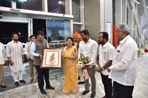 मुख्यमंत्री देवेंद्र फडणवीस यांचे कोल्हापूर विमानतळावर स्वागत