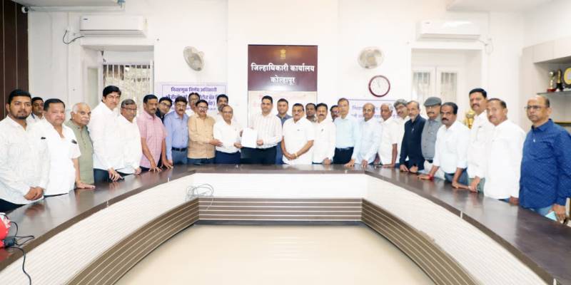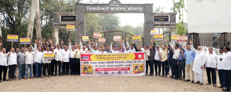कोल्हापूर : “रद्द करा, रद्द करा, मार्केट सेस रद्द करा..... जीएसटी कायदा सुटसुटीत करा” या आशयाचे फलक हातात घेत आज व्यापाऱ्यांनी जिल्हाधिकारी कार्यालय प्रवेशव्दार येथे निदर्शने केली. त्यानंतर तहसीलदार (गृह शाखा) जिल्हाधिकारी कार्यालय स्वप्निल पवार यांना निवेदन देण्यात आले. निवेदनात म्हंटले आहे, अन्नधान्य व खाद्यान्न वस्तूंवर ५% जीएसटी लागू झालेला आहे व त्याचे राजस्व राज्यशासनाला मिळत आहे. त्यामुळे कृषी उत्पन्न बाजार समिती कर (सेस) रद्द करावा, दि. २६/०८/२०२४ रोजी तत्कालीन उपमुख्यमंत्री देवेंद्र फडणवीस यांच्या समवेत झालेल्या चर्चेमध्ये अनिर्णित विषयांवर पुन्हा त्वरीत मिटींग घेऊन निर्णय घेण्यात यावी, राष्ट्रीय बाजार समिती बाबत शासनाने प्रस्तावित केलेल्या अध्यादेशामधील त्रुटी दूर करण्याबाबत कृती समितीबरोबर त्वरीत चर्चा करण्यात यावी.
