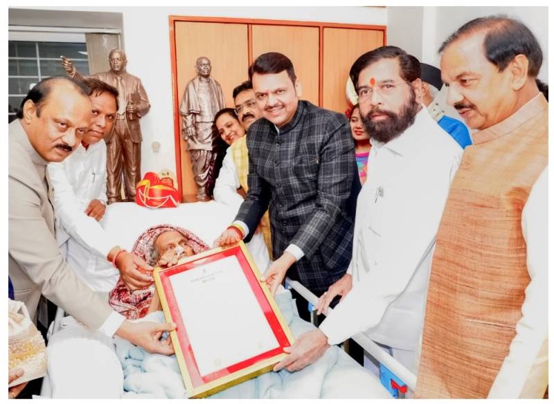 जगप्रसिद्ध शिल्पकार राम सुतार यांना महाराष्ट्र शासनाचा सर्वोच्च नागरी सन्मान ‘महाराष्ट्र भूषण 2024’ पुरस्कार नोएडा (उत्तर प्रदेश) येथील त्यांच्या राहत्या घरी मुख्यमंत्री देवेंद्र फडणवीस यांच्या हस्ते प्रदान करण्यात आला. यावेळी उपमुख्यमंत्री एकनाथ शिंदे, उपमुख्यमंत्री अजित पवार, सांस्कृतिक कार्यमंत्री ॲड. आशिष शेलार आदी उपस्थित होते.