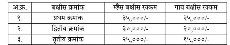 * बक्षीसाची रक्कम पुढीलप्रमाणे