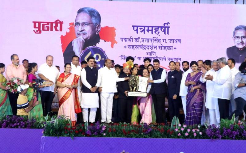 'पुढारी'चे मुख्य संपादक पद्मश्री डॉ. प्रतापसिंह जाधव यांच्या ८० व्या वाढदिवसानिमित्त कोल्हापुरातील पोलिस परेड मैदानावर आयोजित सहस्रचंद्रदर्शन सोहळ्यात अध्यक्षस्थानावरून शरद पवार बोलत होते. मुख्यमंत्री देवेंद्र फडणवीस यांच्या हस्ते मानपत्र देऊन डॉ. जाधव यांचा गौरव करण्यात आला.