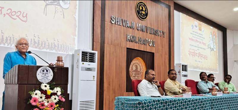 महाराष्ट्र शासनाचा मराठी भाषा विभाग, महाराष्ट्र राज्य साहित्य आणि संस्कृती मंडळ यांच्या जिल्हास्तरीय साहित्य संमेलन अनुदानातून येथील भाषाविकास संशोधन संस्था आणि शिवाजी विद्यापीठाचे संत तुकाराम अध्यासन यांच्या संयुक्त विद्यमाने संत तुकोबारायांना समर्पित ‘संत साहित्य संमेलन-२०२५’च्या संमेलनाध्यक्ष पदावरुन ते बोलत होते. उद्घाटन सत्राच्या अध्यक्षस्थानी विद्यापीठाचे कुलसचिव डॉ. विलास शिंदे होते, तर साहित्य आणि संस्कृती मंडळाचे सदस्य डॉ. प्रमोद मुनघाटे आणि प्रा. प्रवीण बांदेकर प्रमुख उपस्थित होते.