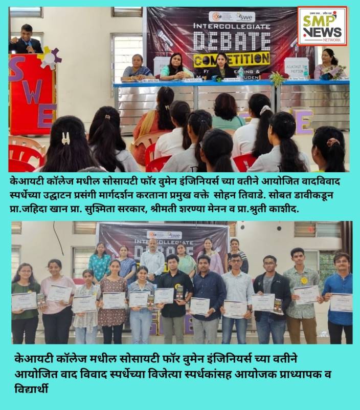 प्रगतीसाठी स्वतःची जागरूकता आणि तर्कशुद्ध विचारसरणी अत्यंत महत्त्वाची : सोहम तिवाडे; केआयटी मध्ये सोसायटी वुमेन इंजिनिअर्स च्या वतीने वादविवाद स्पर्धेचे आयोजन