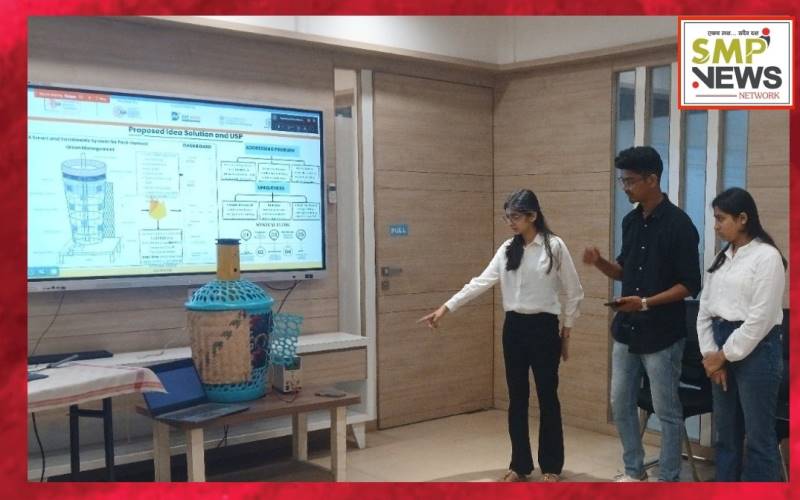 १. केआयटी च्या वतीने आयोजित आयडियाथॉन-२५ स्पर्धेच्या अंतिम फेरीसाठी सादरीकरण करताना संशोधक विद्यार्थी.