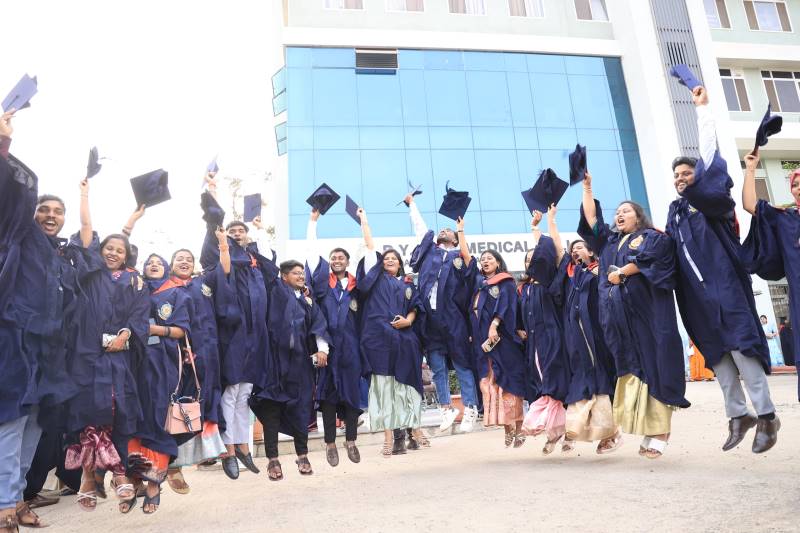 डी.वाय.पाटील हॉस्पिटलच्या आवारात भव्य शोभायात्रेने दीक्षांत समारंभाला प्रारंभ झाला कुलपती डॉ. संजय डी. पाटील यांच्या अध्यक्षतेखाली झालेल्या या समारंभाला दत्ता मेघे विद्यापीठचे प्र- कुलपती डॉ. वेदप्रकाश मिश्रा, विश्वस्त आणि डी. वाय. पाटील कृषी व तंत्र विद्यापीठाचे प्र कुलपती ऋतुराज पाटील, विश्वस्त पृथ्वीराज पाटील, विश्वस्त तेजस पाटील, कुलगुरू डॉ. राकेश कुमार शर्मा, कुलसचिव डॉ. विश्वनाथ भोसले, परीक्षा नियंत्रक अभय जोशी आदी व्यासपीठावर उपस्थित होते.
