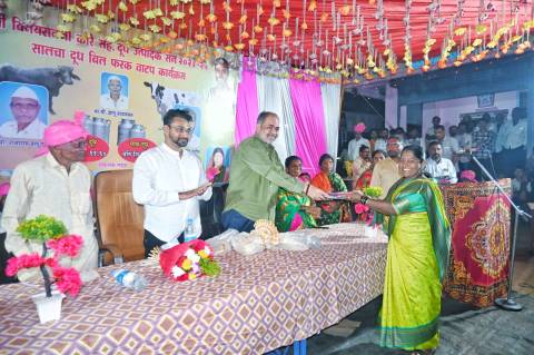 कोलोली येथे "देव दिपावली" निमित्त दूध उत्पादकांना फरक बिलाचे वाटप
