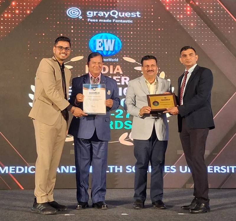 शनिवारी नवी दिल्ली येथे पार पडलेल्या भव्य पुरस्कार सोहळ्यात विद्यापीठाचे कुलसचिव डॉ. व्ही. व्ही. भोसले, मेडिकल कॉलेजचे अधिष्ठाता डॉ. राजेश ख्यालप्पा यांनी हा सन्मान स्वीकारला.