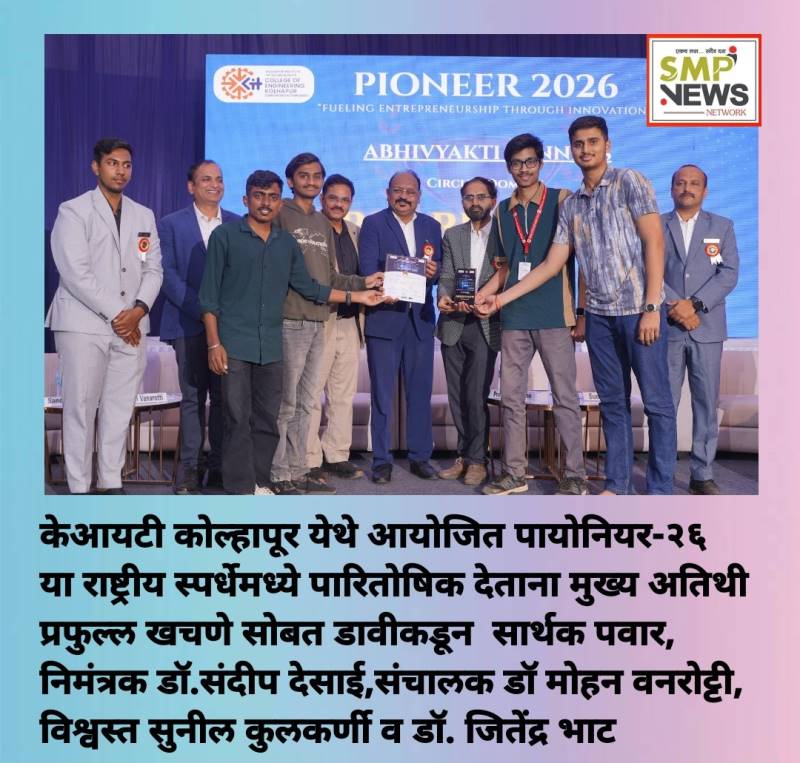 कोल्हापूर : येथील केआयटी अभियांत्रिकी (प्रदत्त स्वायत्त) महाविद्यालयाच्या वतीने आयोजित राष्ट्रीय स्तरावरील पायोनियर २६ हा २ दिवसीय टेक्नो फेस्ट दि. २२ फेब्रुवारी २६ रोजी यशस्वीरित्या संपन्न झाला.या टेक फेस्ट मध्ये १२ स्पर्धांच्या माध्यमातून ,१४ राज्य व जवळपास ९० महाविद्यालयातून ६००० स्पर्धक सहभागी झाले होते.