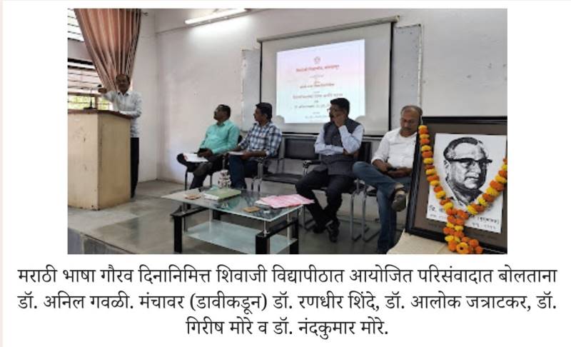 शिवाजी विद्यापीठात आज मराठी भाषा गौरव दिवस मोठ्या उत्साहात साजरा करण्यात आला. विद्यापीठाच्या वि.स. खांडेकर भवनातील मराठी अधिविभाग आज रांगोळ्या आणि सुवासिक फुलांच्या माळांनी सजला. विद्यार्थ्यांनी सर्व अधिविभाग आकर्षक पद्धतीने सजविला. या आनंदाच्या वातावरणात ‘विरामचिन्हांचा वापर आणि महत्त्व’ या विषयावरील परिसंवाद अतिशय उत्तम रंगला. या परिसंवादात विद्यापीठाचे माजी अधिष्ठाता डॉ. अनिल गवळी आणि ज्येष्ठ विचारवंत डॉ. गिरीष मोरे यांनी सहभाग घेतला. जनसंपर्क अधिकारी तथा विद्यापीठाचे मराठी भाषा अधिकारी डॉ. आलोक जत्राटकर यांची प्रमुख उपस्थिती होती.